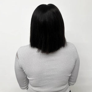 This chic 10-inch  bob is perfect for any occasion and is made with 100% human hair for a natural look and feel.