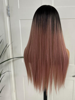 Diaz is a 24-inch lace front wig with a striking ombré effect that blends natural black roots into soft rose-pink lengths. Designed with a sleek, straight finish and a natural middle parting, this wig delivers a modern, fashion-forward look that works for both everyday glam and statement styling.