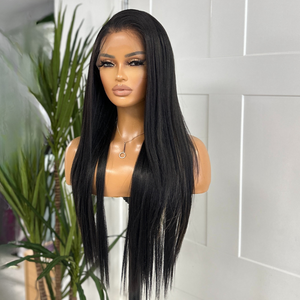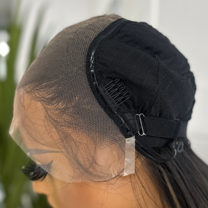 Sleek and sophisticated – meet Iris, a 28-inch straight lace front wig . Crafted with Premium Swiss Lace, it creates a soft, natural hairline that blends seamlessly. The peekaboo blonde highlight at the temple adds an edgy twist to the classic black base, making Iris both timeless and fashion-forward. Made from a heat-safe human hair blend with adjustable straps and a breathable cap, this wig is designed for comfort, versatility, and salon-inspired style.