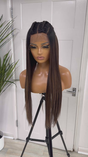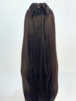 Anya's got it all—plaited style, straight hair, and the perfect center part! Plus, she's got a lace front and a uniquely ‘E’-shaped lace parting for the most natural-looking finish.