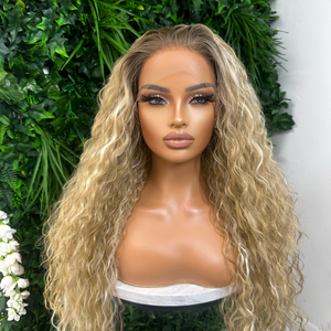 CHYNA-Long Curly Rooted Blonde Lace Front Synthetic Wig