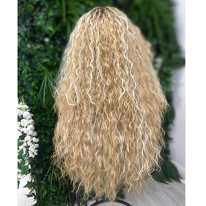 Tame the tresses and unleash your inner diva with CHYNA! This long, curly, rooted blonde synthetic lace frontal wig will have all eyes on you–talk about Fierce with a capital F! Make a splash with this unique and trendsetting look you won't find anywhere else. Go wild with Chyna!