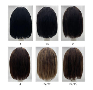 Hailey is a premium human hair blend wig designed in a classic shoulder-length bob with a full fringe. Made with 100% Remy human hair blend, it offers a soft, natural texture and realistic movement.