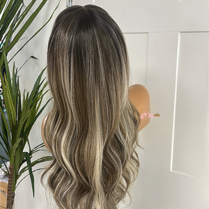Long Rooted Ash Blonde Wavy Synthetic Lace Front Wig-JESSIE