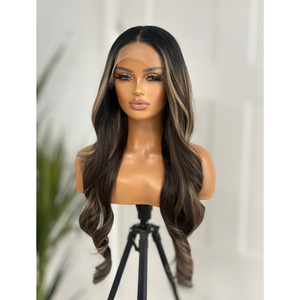 Long Rooted Rich Brown Mix Lace Frontal Synthetic Wig- JEAN/18