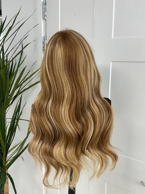 Colour: Golden blonde root + butterscotch mid-tones + soft beige blonde highlights (Honey Frappe)