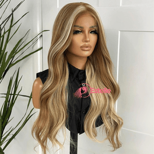 Meet Natasha, a luxurious 25-inch HD lace front wig designed for effortless glamour. This premium heat-safe human hair blend wig blends golden blondes with creamy butterscotch mid-tones and soft beige blonde highlights, creating a radiant, dimensional Honey Frappe effect that’s perfect for everyday wear or special occasions.