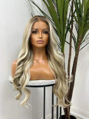 Colour Shown :Ash Brown Rooted | Ash Blonde/Platinum Blonde Piano Mix face framing highlights