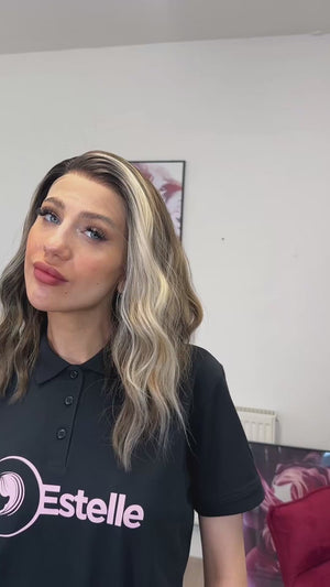 Meet “Kelly” — a soft, wavy synthetic lace front wig in a dimensional rooted ash brown & blonde balayage. Natural-looking waves, a breathable cap and a transparent lace hairline make this an effortless, everyday beauty that photographs beautifully and styles in minutes.