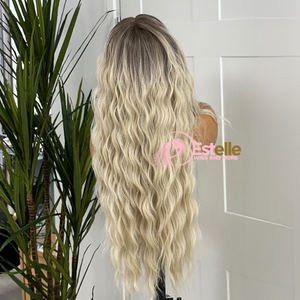 Rooted Light Blonde Wavy Synthetic Lace Front Wig-SILVIA