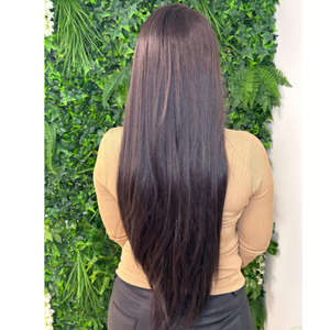 The Stella Wig offers 30” of beautifully luscious long locks. Styled in a side parting, with a lace front & 4” lace parting, to make this blended mix wig incredibly realistic.