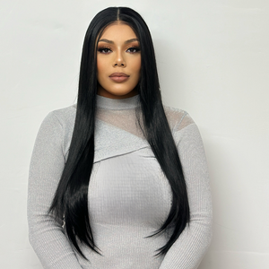Jet Black Long Straight Wig | 13x6 Lace Frontal | 24–26” Synthetic-EWD 44