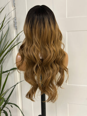 Rooted Golden Brown Wavy Synthetic Lace Front Wig Ewd -61