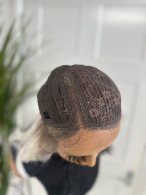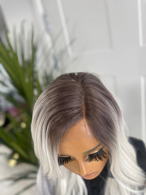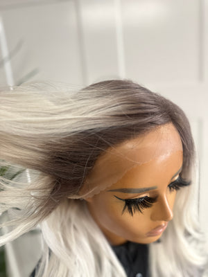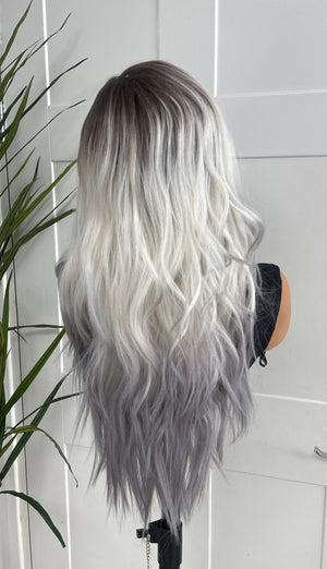 Sleek, modern, and striking – the Melody Wig blends silver-grey ombre tones with a soft loose curl pattern. Designed with a lace side parting, baby hairs, and a full lace front, this style offers a natural hairline and versatile wear. Made from premium synthetic fibre, Melody can also be heat-styled for extra flexibility.