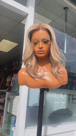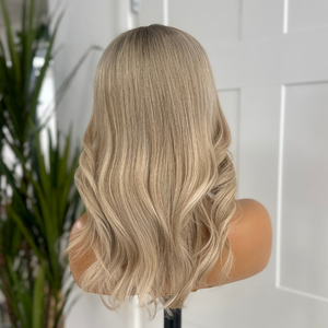 18 Inches Rooted Light Blonde Human Hair Lace Front Wig -LORI