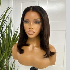 14 inches Bob Natural Black/Brown Human Hair HD Lace Frontal Wig-BROOKLYN