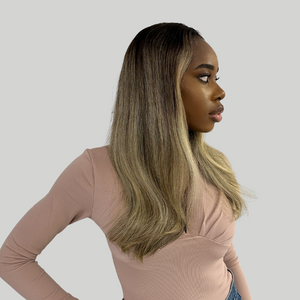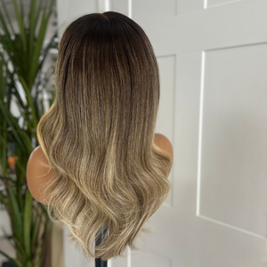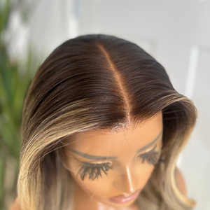 16'' Rooted Brown/Blonde Human Hair HD Lace Frontal Wig-JULIA -