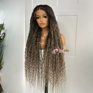 Brown Blonde Mix Long Knotless Boho Braids Lace Wig -ZIZI