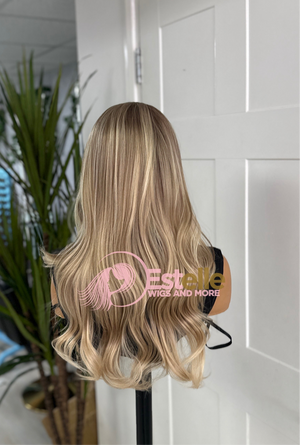 Long Wavy Rooted Golden Blonde Balayage Wavy Lace Front Wig –NINA/E10