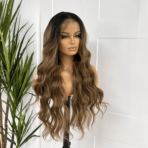 Rooted Dark Brown to Rich Caramel Ombre Lace Front Wig-Alicia