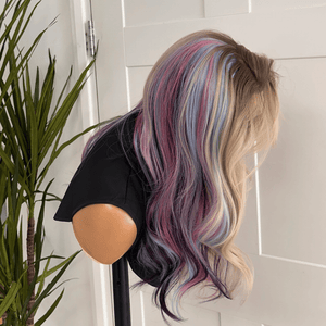 Blonde, Violet & Blue Multitone Lace Front Wig | 22” Soft Waves-Elara