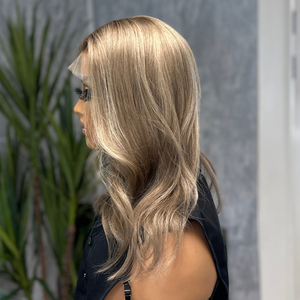 Perruque blonde avec mèches, bordure en dentelle HD 13×6 - Anki