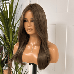 Introducing Marina (Soft Ash Brown Edition) — a sleek, beautifully tailored monofilament lace front wig designed for comfort, realism, and effortless sophistication. With a 5×5 monofilament top that mimics natural hair growth and a seamless lace-front melt, Marina offers versatile parting and smooth, natural movement.
